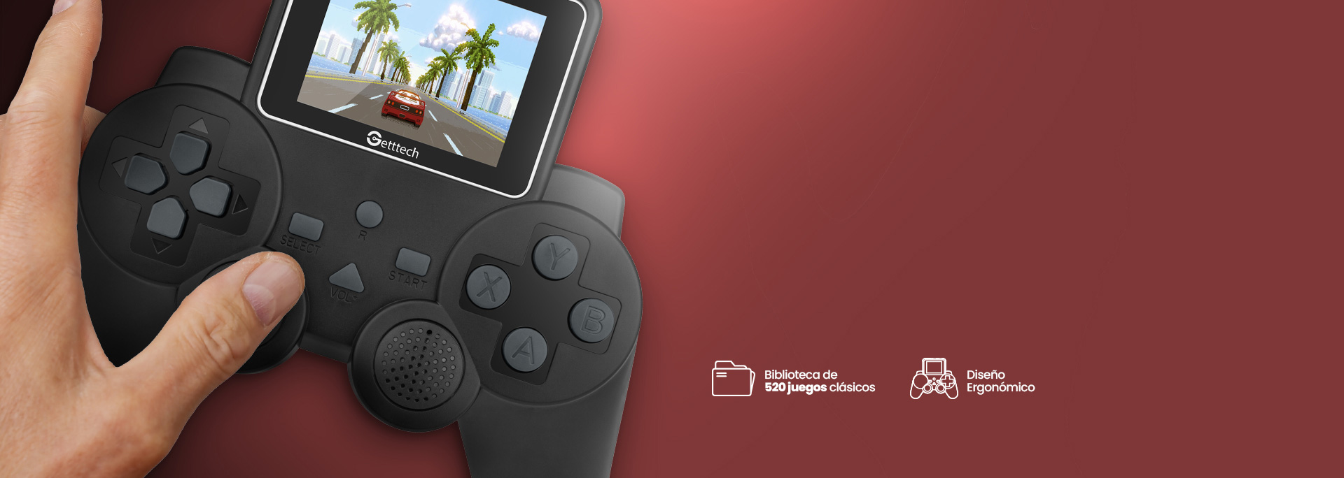 Consola de Juegos Portátil Getttech | LCD 2.4" - 520 Juegos Instalados - Bocina Integrada - Negro