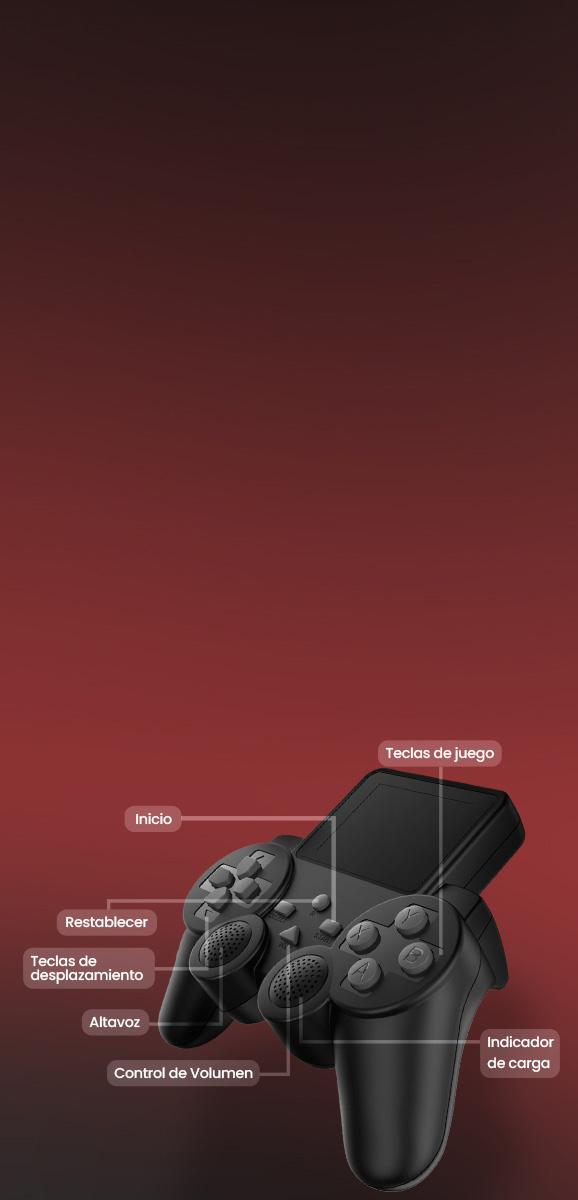 Funciones extra | 1. 520 juegos integrados 2. Compatible con juegos GB y NES 3. Compatible con conexión NTSC y PAL a TV mediante cable AV |