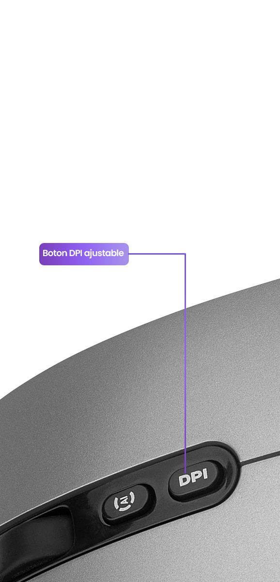 Configura la velocidad del cursor con tres niveles de DPI (1000, 1200 y 1600), ideales para tareas de precisión o movimientos rápidos.