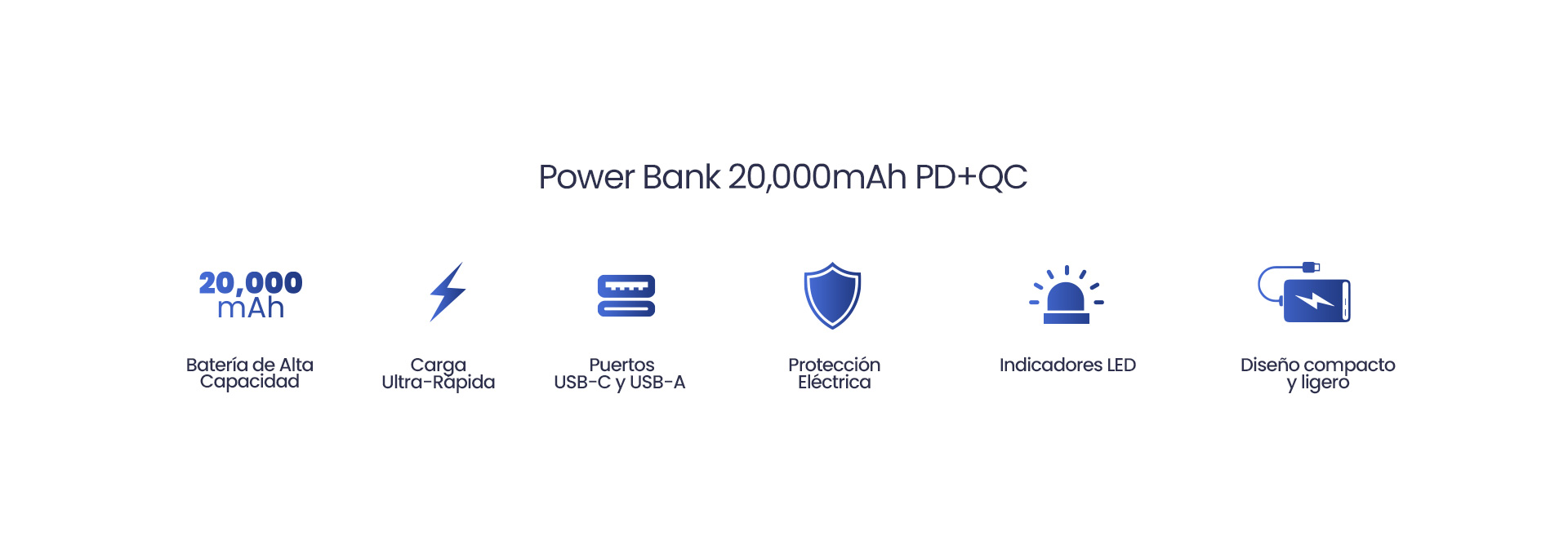 Power Bank Carga Rápida | 20,000 mAh - USB-C/USB-A