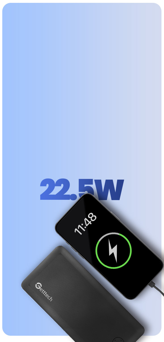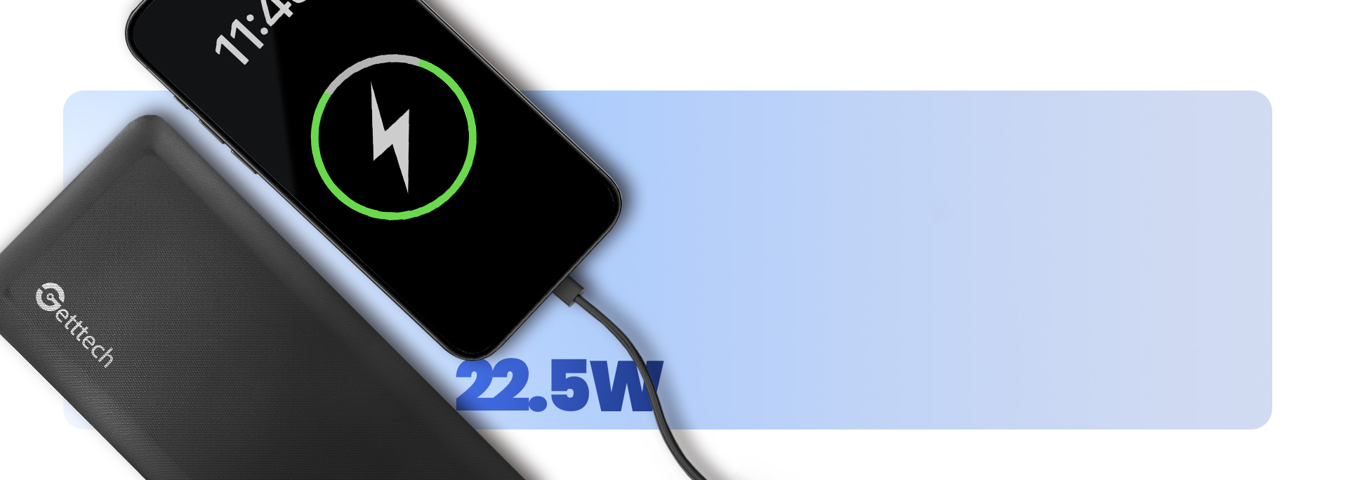 Compatible con los estándares más avanzados de carga rápida, ofreciendo hasta 22.5W de potencia. Esto reduce significativamente los tiempos de espera, recargando dispositivos compatibles hasta 70% más rápido que un cargador convencional.