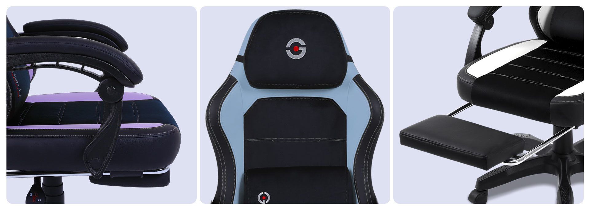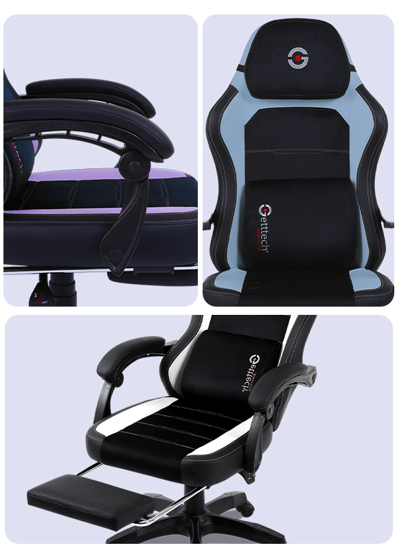 Getttech Silla Gamer Azul Celeste/Negro, Reposapiés, Cojín de Masaje Vibratorio - Modelo: GAR-GAOPY-G2-SB