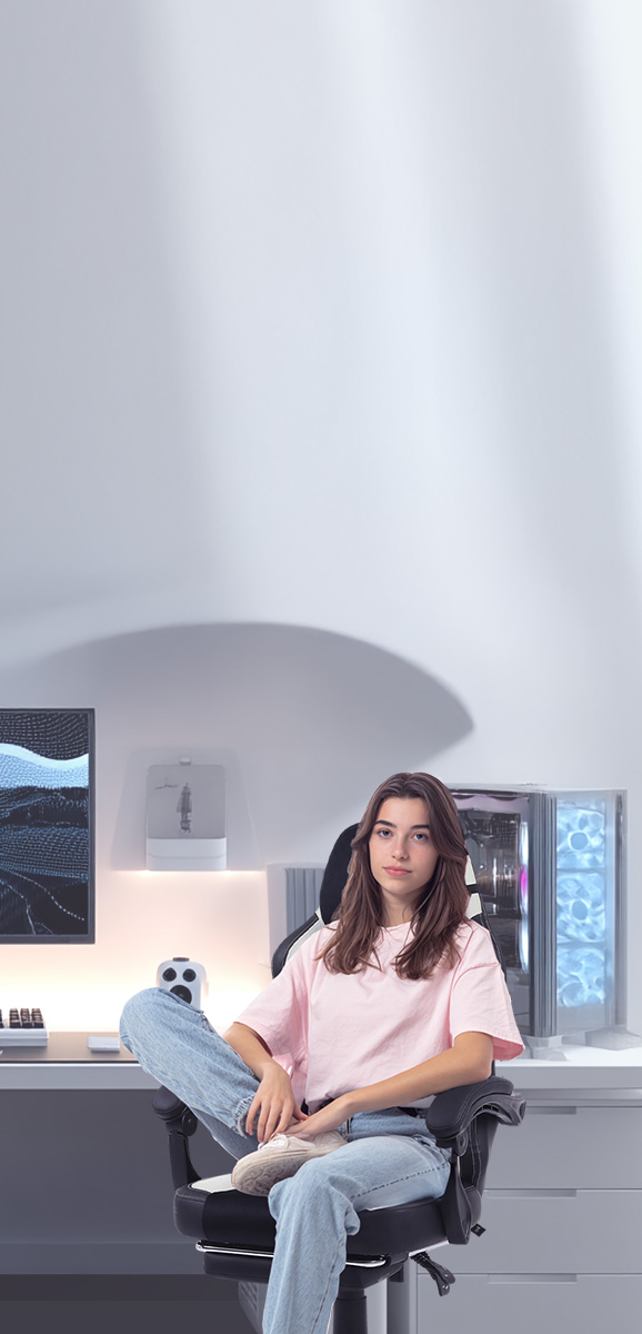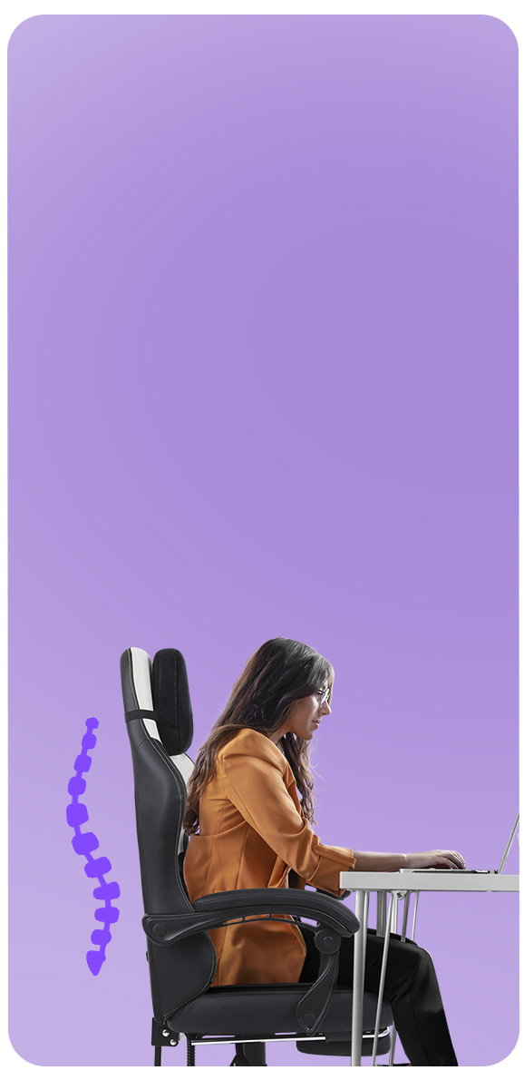 Desde la cabeza hasta la base, esta silla cuida tu postura con soporte lumbar, respaldo anatómico y espuma de alta densidad.