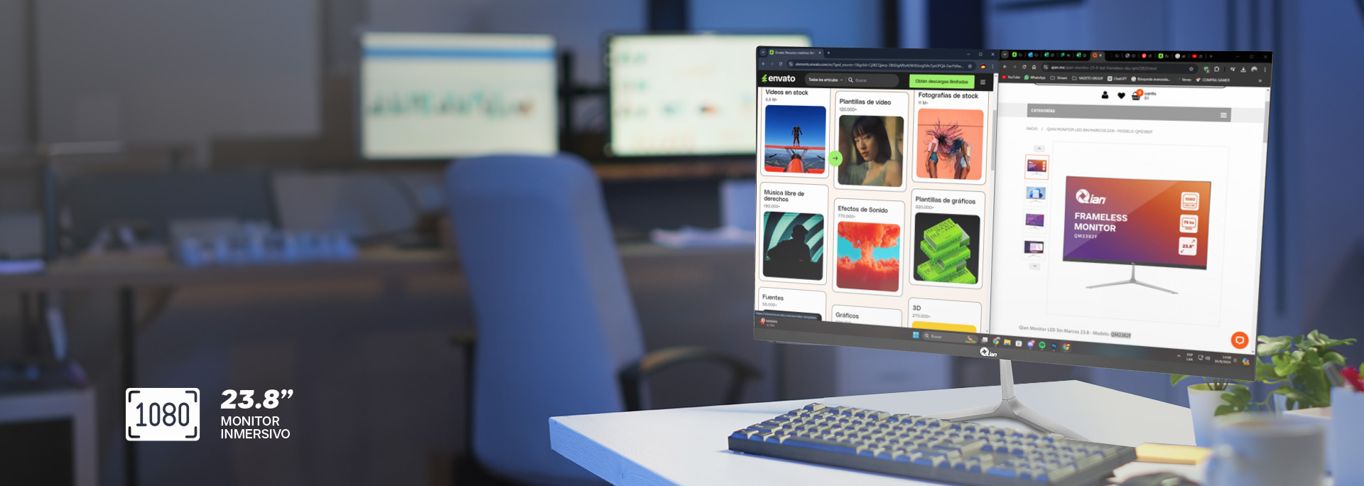 Disfruta de una experiencia visual inmersiva con el Monitor LED Sin Marcos de 23.8” de Qian. Su pantalla Full HD de 1920 x 1080 ofrece imágenes claras y nítidas, ideal para aplicaciones empresariales que requieren precisión y calidad de imagen. Con una gama de 16.7 millones de colores, este monitor es perfecto para estaciones de trabajo y oficinas, proporcionando un entorno visual profesional y eficiente. Su frecuencia de actualización de 60Hz asegura una reproducción fluida y precisa, ya sea para tareas cotidianas o presentaciones visuales.