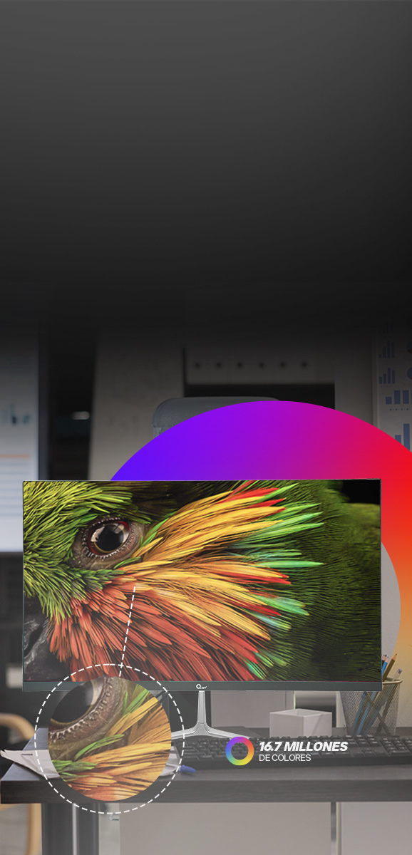 Lleva tus aplicaciones, películas y gráficos al siguiente nivel con colores vibrantes y precisos desde cualquier ángulo de visión. Con una cobertura del 96% del espectro sRGB y 16.7 millones de colores, este monitor proporciona imágenes realistas y detalladas, ideales para diseño gráfico, presentaciones o análisis de datos.